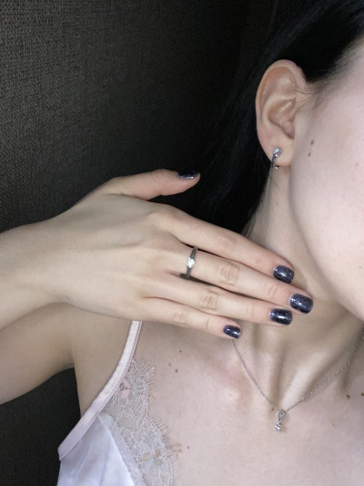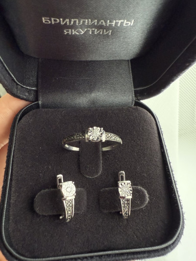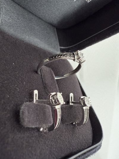 Прекрасный комплект, очень нежный. Красиво играют камушки, а сочетание белого золота и черных бриллиантов в данном исполнении - это вау !!!!