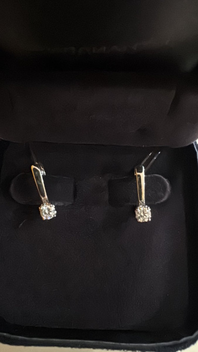Серьги с 2 бриллиантами природными, 0.37 карат, огранка круг 57 граней, цвет 3, чистота 6, тип огранки А;