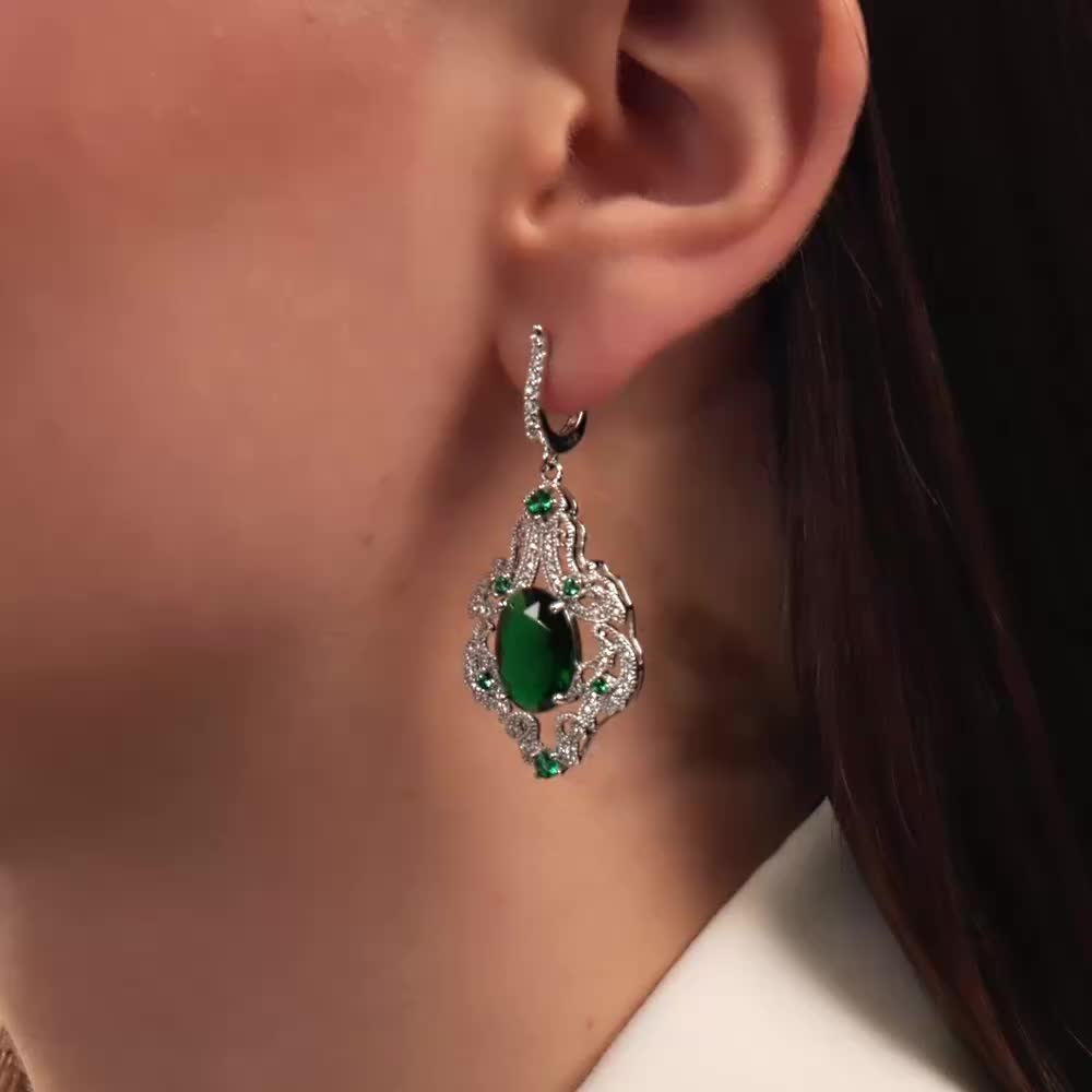 Шикарные серебряные серёжки с фианитоми и алпанитом блестят софитами света