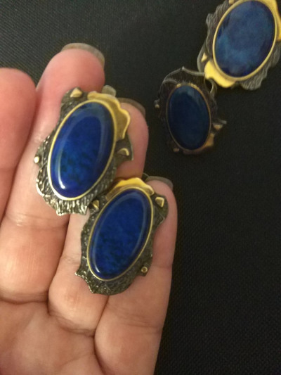Очень красивые крупные серьги. На ушах ощутимы. Камень насыщенного синего цвета.