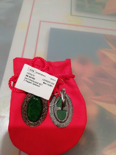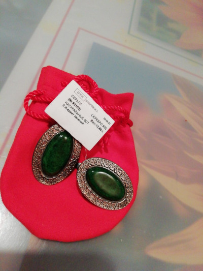 Серебряные серьги с жадеитом