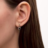 Серьги из розового золота с сапфирами выполнены в романтическом стиле. Накладка из белого золота в форме цветка добавляет объем серьгам и подчеркивает красоту камня.