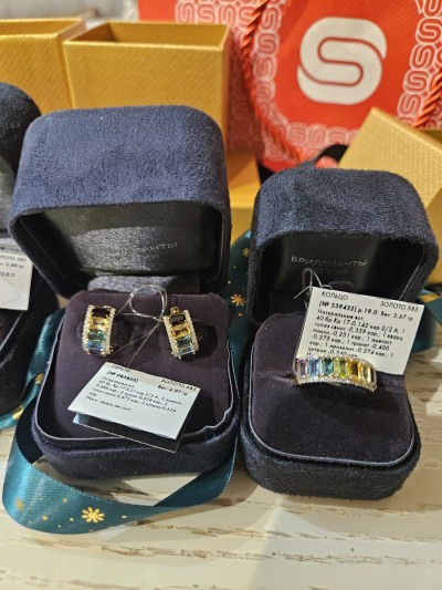 Золотые серьги с цитринами, гранатами, топазами, кварцами, аметистами и бриллиантами