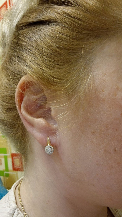 Серьги с 2 бриллиантами природными, 0.02 карат, огранка круг 57 граней, цвет 4, чистота 6;