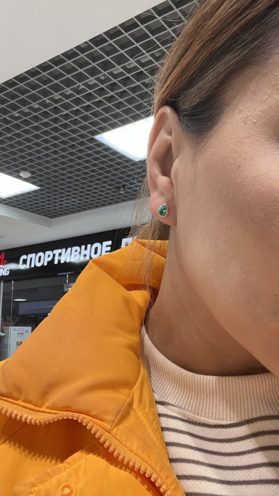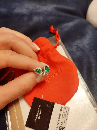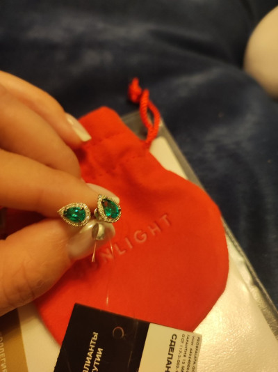 Серьги замечательные! Очень красивый холодный оттенок зеленого в обрамлении сверкающих бриллиантов. Покупкой довольна, рекомендую покупать в комплекте с кольцом.