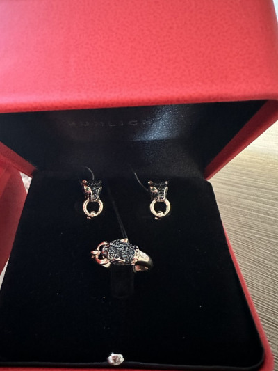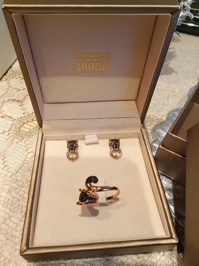 Есть такое кольцо, только с бриллиантами черными. Под него купила серги. Очень классные, акуратные, смотрятся прекрасно. Замочки крепкие.