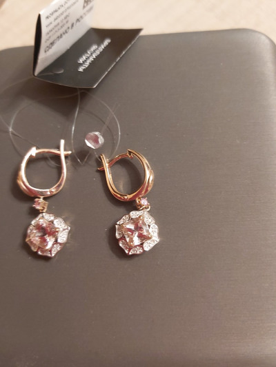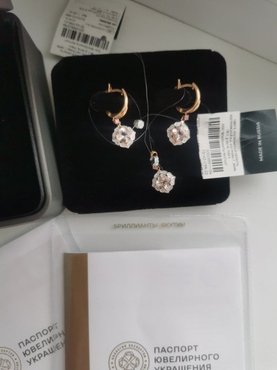 Небольшие, но очень красивые серьги, взяла с подвеской. Смотрятся нежно и достойно. С паспортом