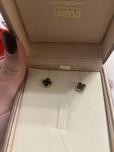 Золотые серьги с ониксом природным