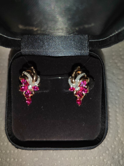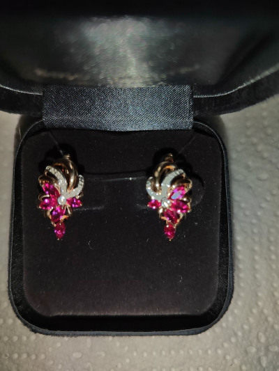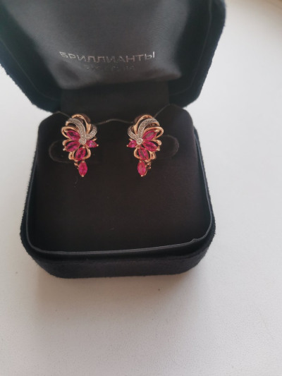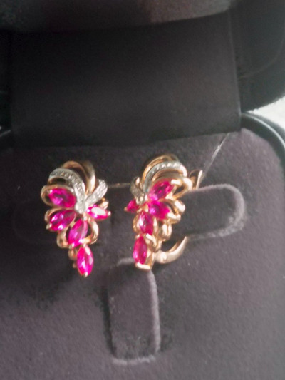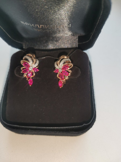 Очень красивые и нежные серёжки. Несмотря на то, что рубины синтетические, они очень похожи на настоящее. Цвет рубина потрясающий. Хотя я предпочитаю настоящие камни, но устоять не смогла и купила эти серьги. Украшения достойны королевы. Спасибо огромное ювелирам за изысканное украшение.