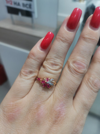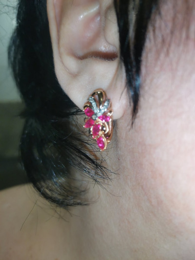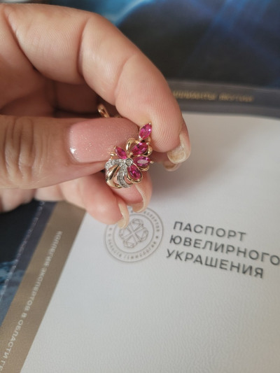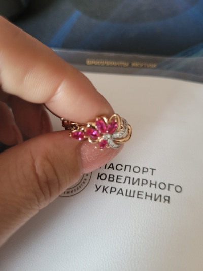 Долго выбирала между рубинами и гранатами. Но эти серьги победили. Очень нежные, красивые, привлекают внимание. Хорошая застежка, приличный вес. Теперь выбираю колечко. Кольцо которое в наборе тоже ооооочень красивенькое, но вес маловат, шинка тонковата, хотелось бы немного больший вес, тем более на размеры от 19. Пожелание для производителей)))