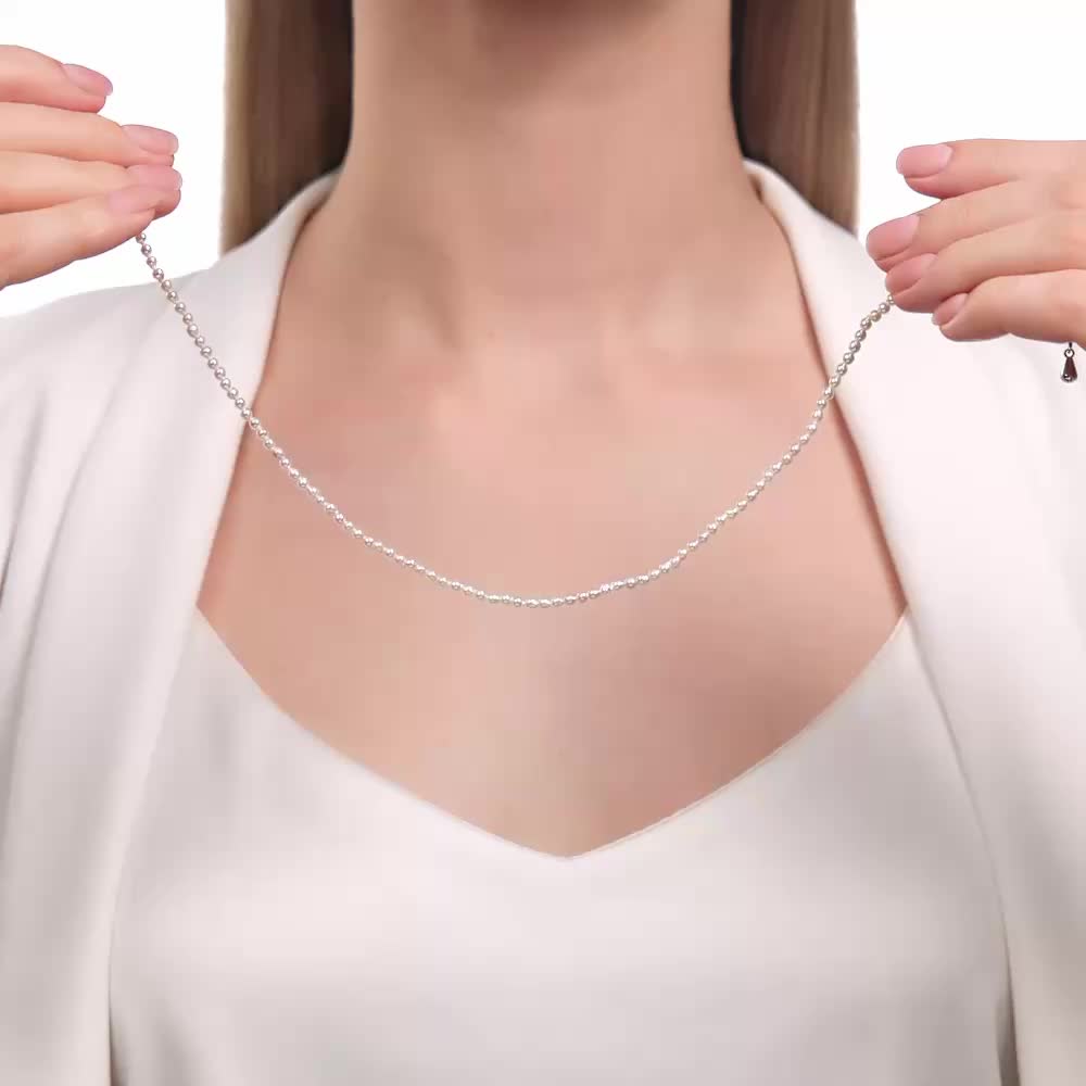 Жемчужины мелкие, ровные, лежат красиво, длине не хватает пары сантиметров, хвостик цепочки поворачивается вниз. В целом выглядит мило)