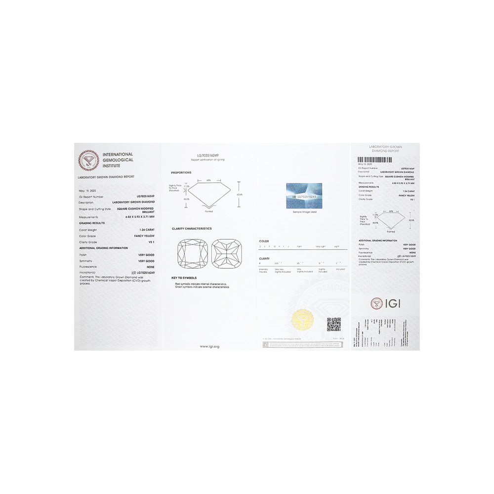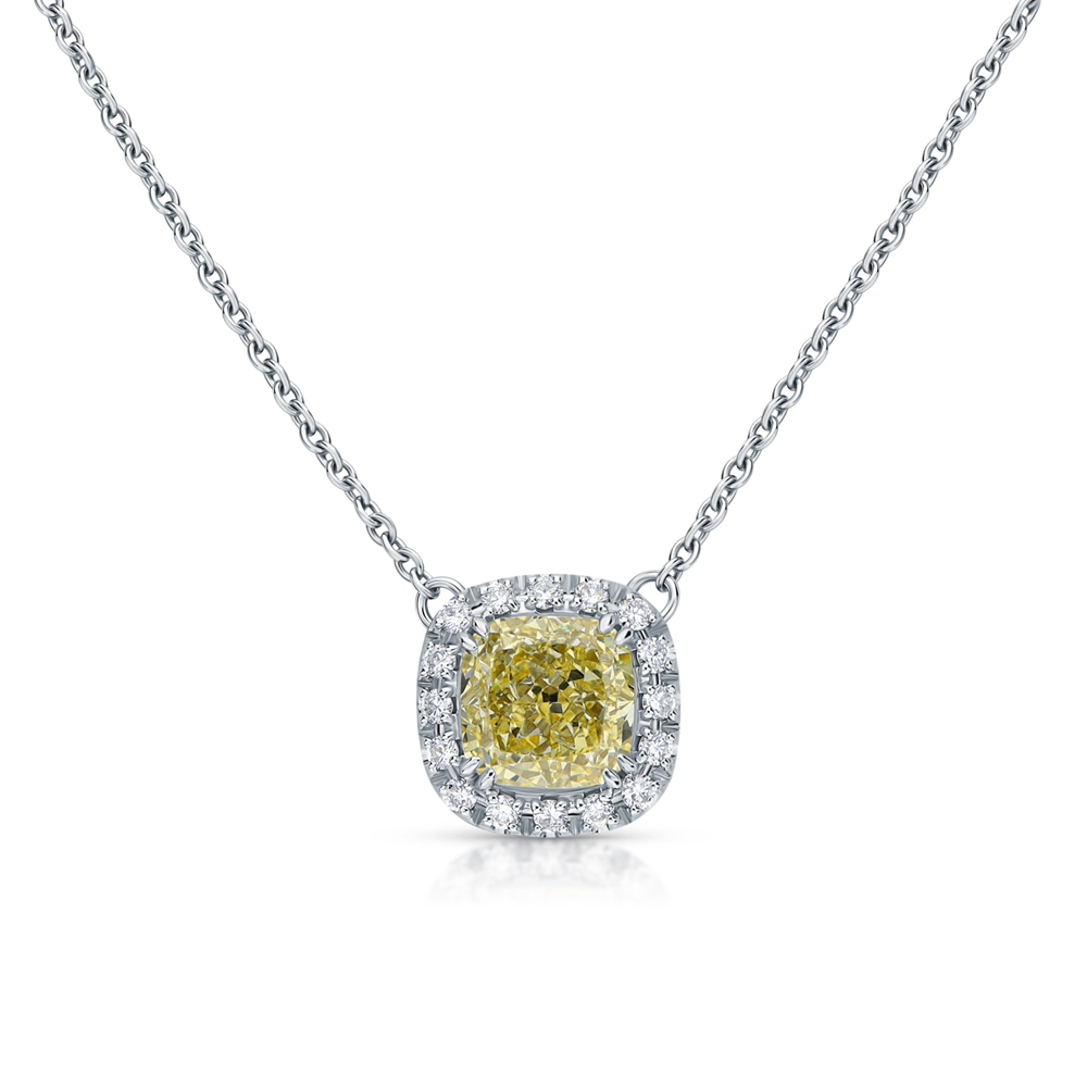 Шейное укр. с 1 бриллиантом выращенным, 1.24 карат, огранка кушон 57 граней, цвет Желтый, чистота 5, тип огранки А;