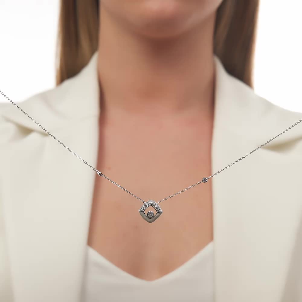 Серебряное шейное украшение с эмалью и фианитами