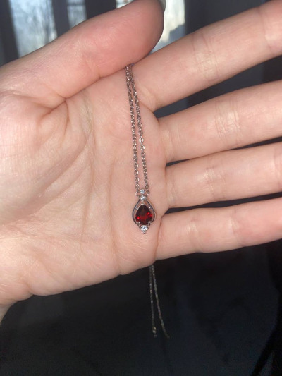 Колье изумительно красоты и нежности с в гранатомёт винного цвета. Камень играет при любом освещении. Спасибо, Санлайт!