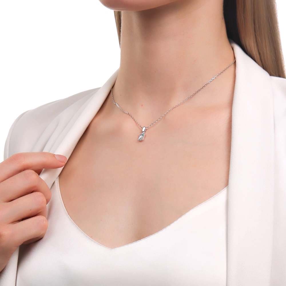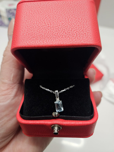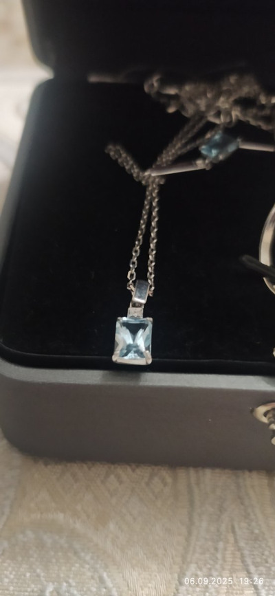 Очень интересный дизайн изделия сочетание изящности и простых форм. Шикарное сочетание белого металла серебра и голубого топаза. Удачный выбор!