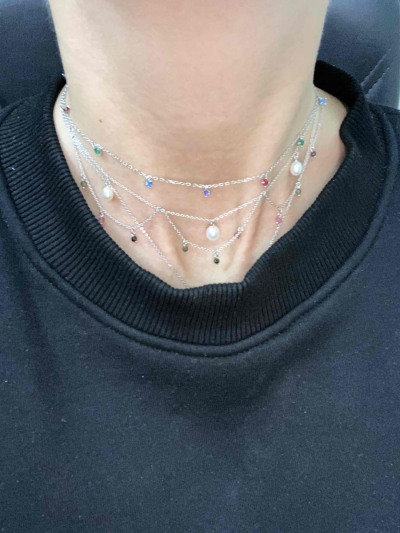 Серебряное колье с жемчугом и турмалинами природными