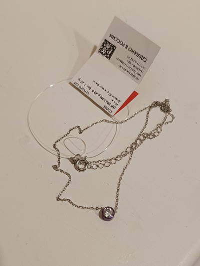 Колье очень красивое и милое, нежное. Красивый фиолетовый цвет. На каждый день самое то. Рекомендую всем , супер. Серебро