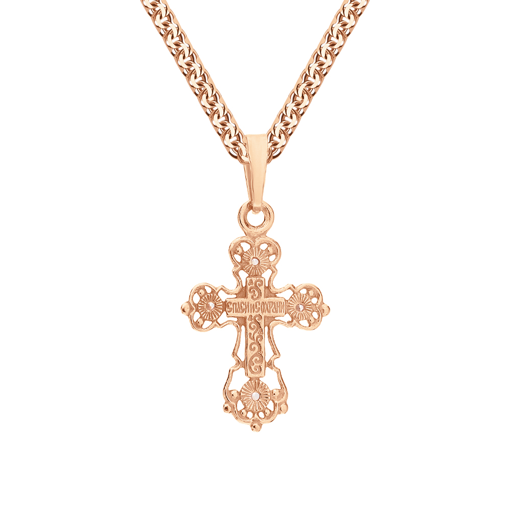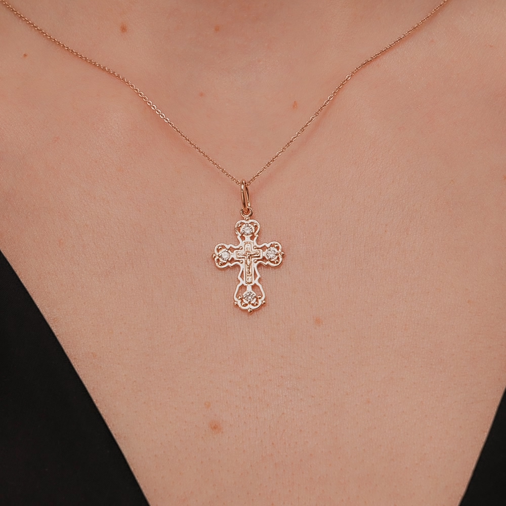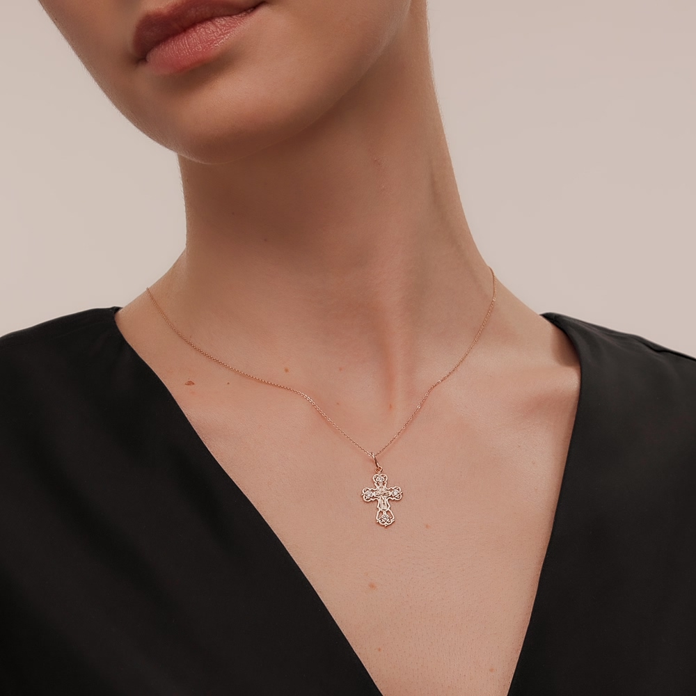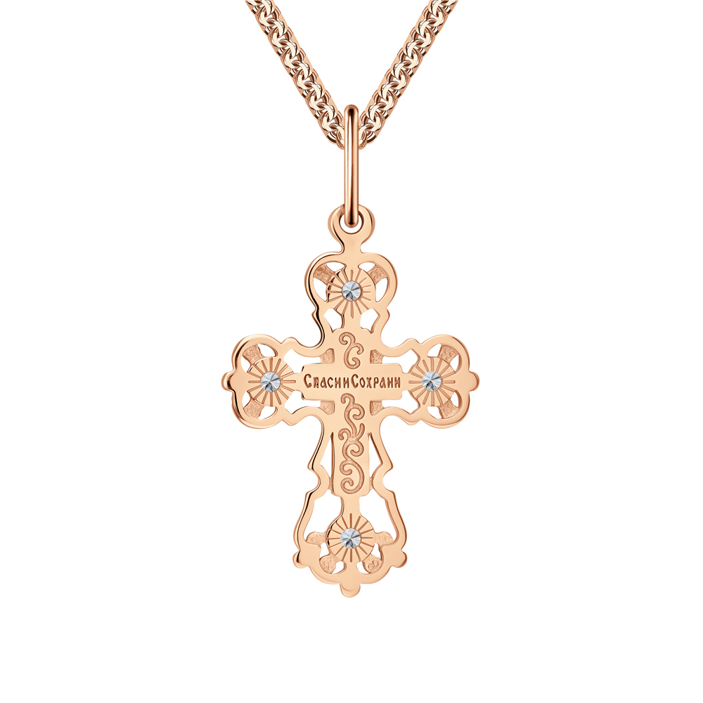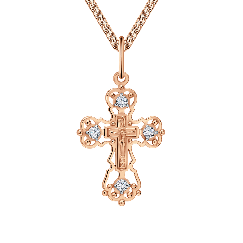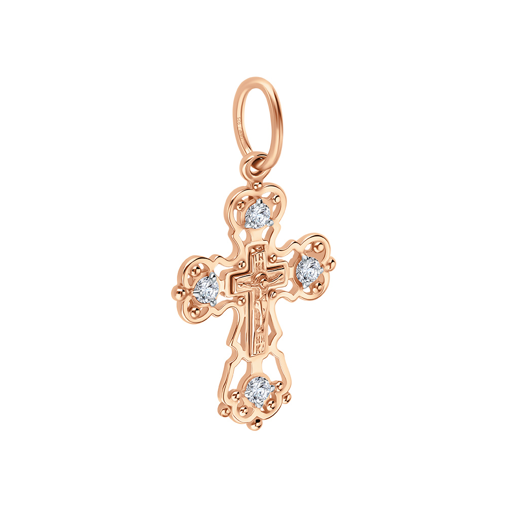 Крестик из серебра с позолотой и фианитами.