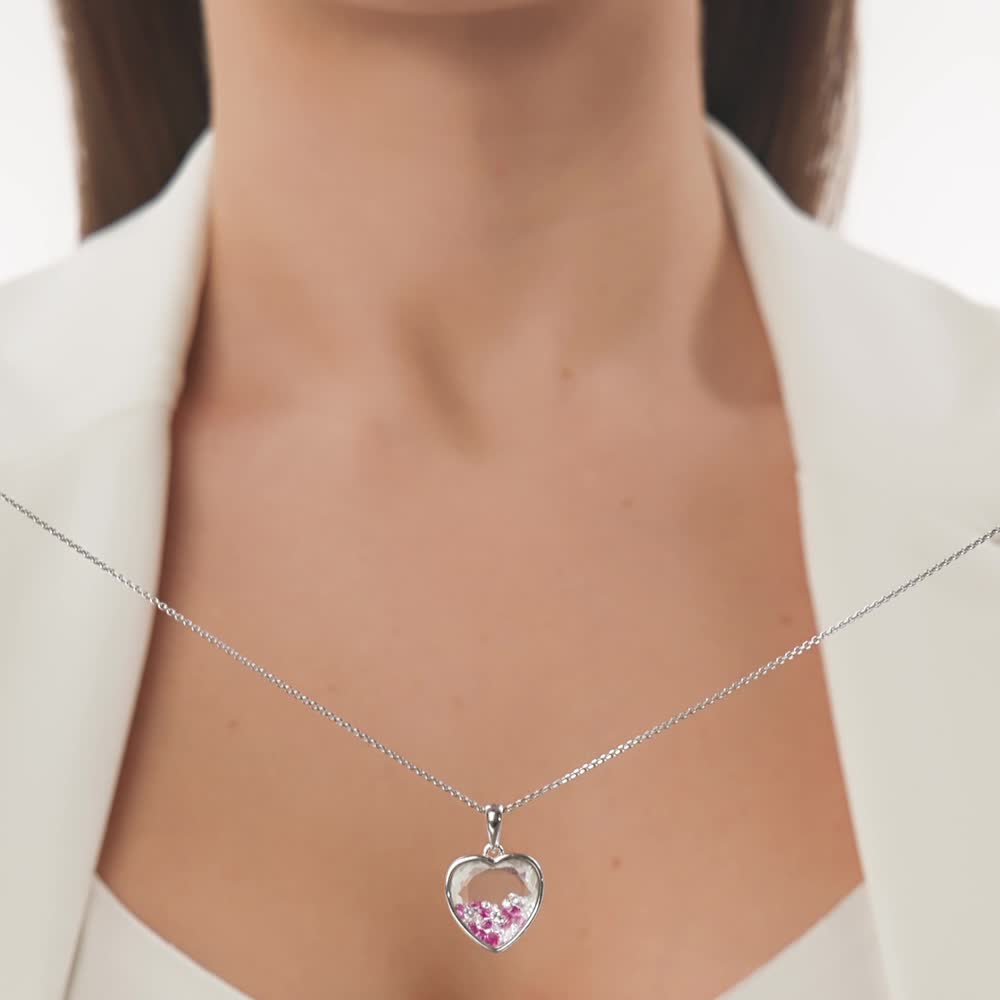 Серебряная подвеска с фианитами, синтетическим корундом и ювелирным стеклом