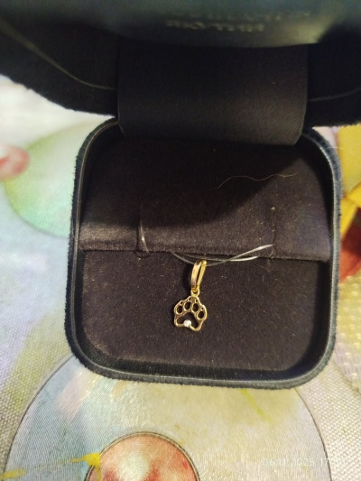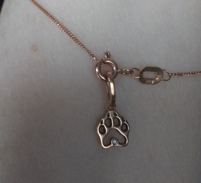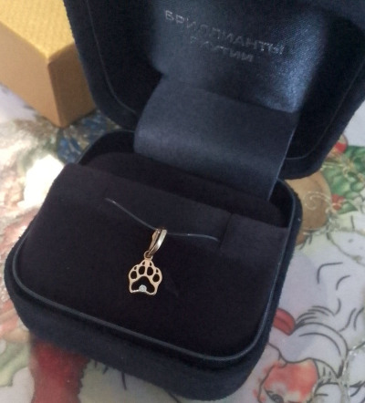 Очень красивая подвеска, бриллиантик сверкает на свету. Жаль только что она маленькая, немного побольше бы смотрелась лучше намного. У меня есть любимая собака Кияра, и я купила подвеску в её честь.