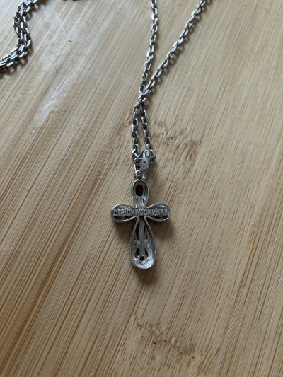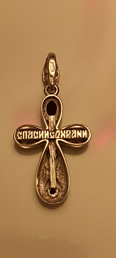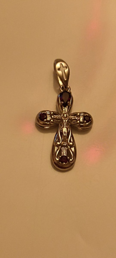 Крестик в магазине давно присмотрела, но полюбуюсь и ухожу. Но потом купив, не могу нарадоваться, очень красивое изделие. Размер оптимальный: немаленький и некрупный. Камень гранат заметен. Ушко крестика хоть для бус, хоть для шнурка или цепи.