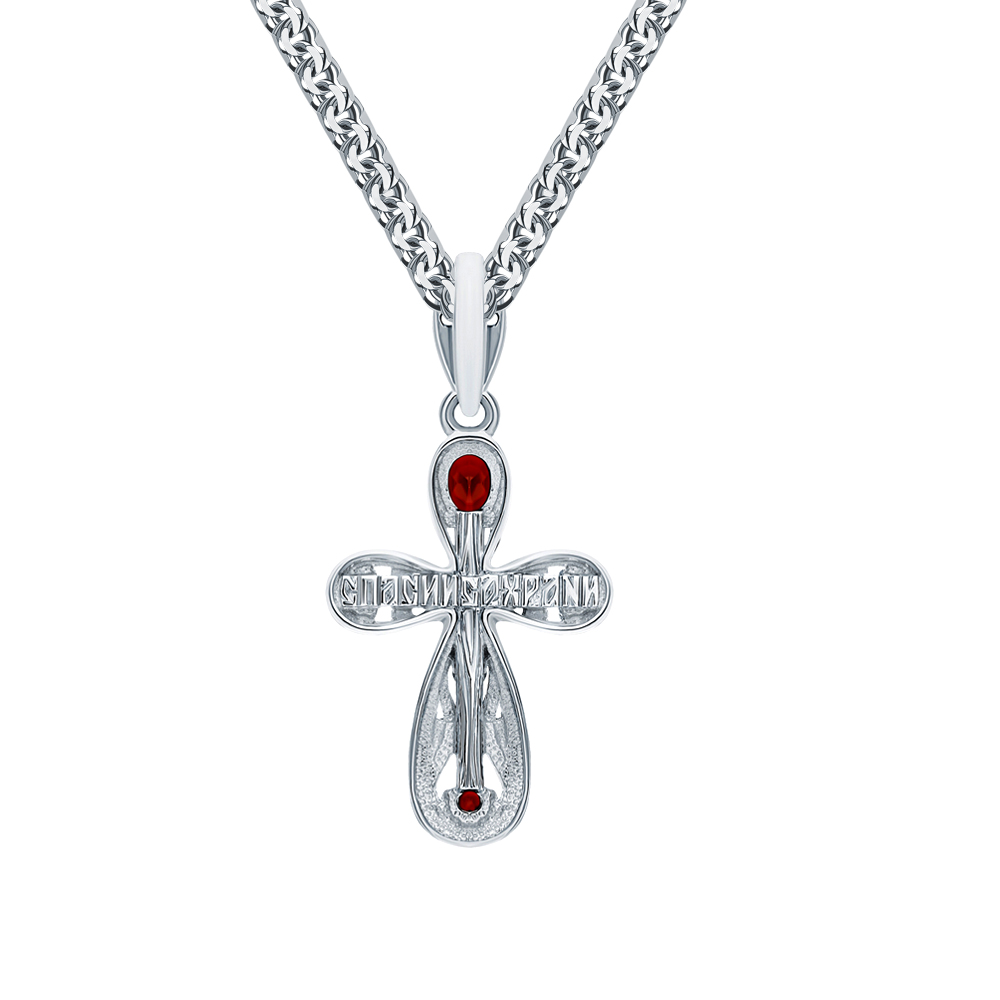 Серебряный крест-подвеска с гранатами природными