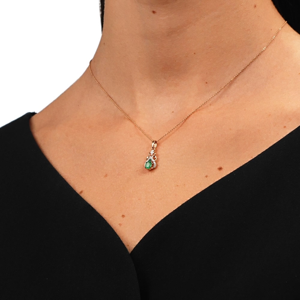 Оригинальное решение, изящная подвеска, изумруд хорошей чистоты, не маленький. Чудесно выглядит на тонкой шее. Спасибо мастерам за такую красоту!