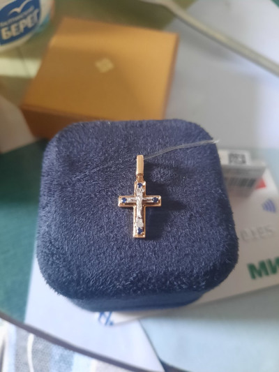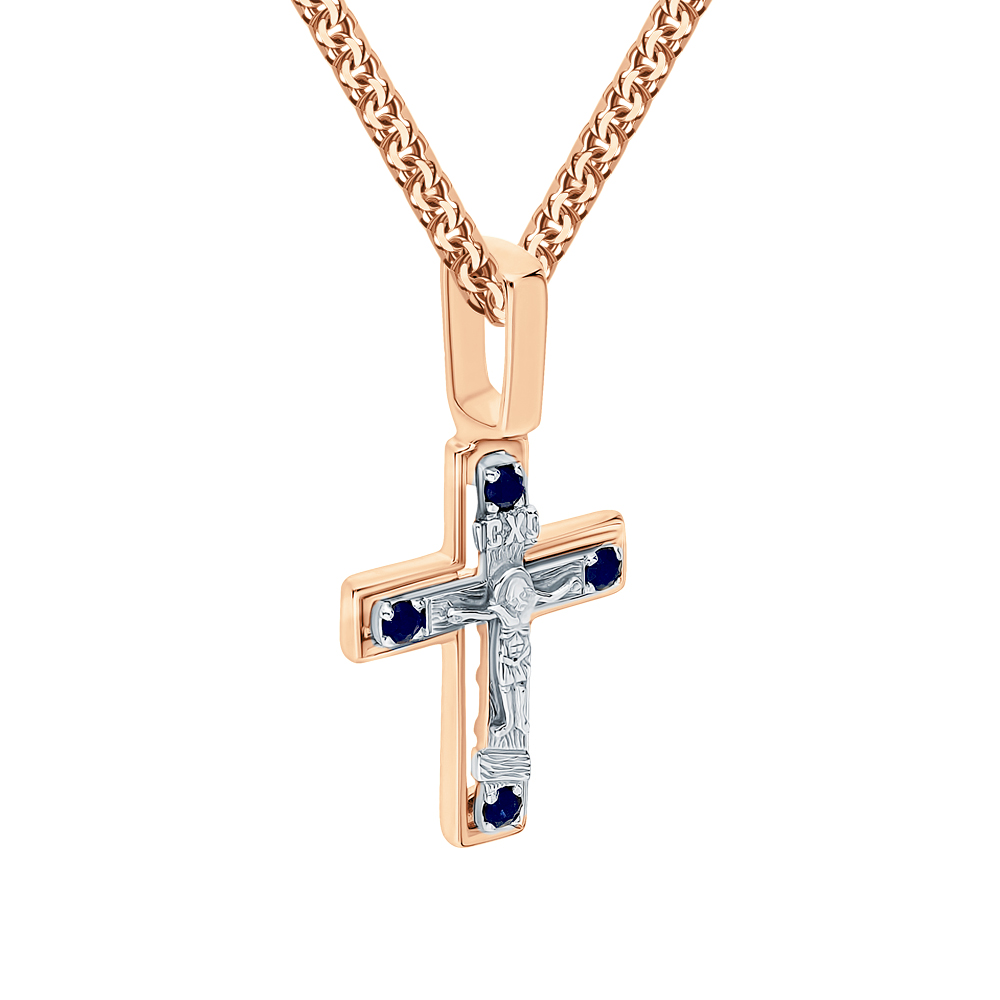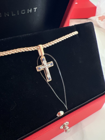 Золотой крест-подвеска с сапфирами природными