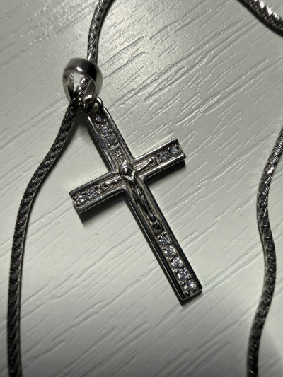 Крестик очень красивый, фианиты блестят на солнце😍!! Здорово, что крестик освящён!! Спасибо вам большое😊💖!! ;)