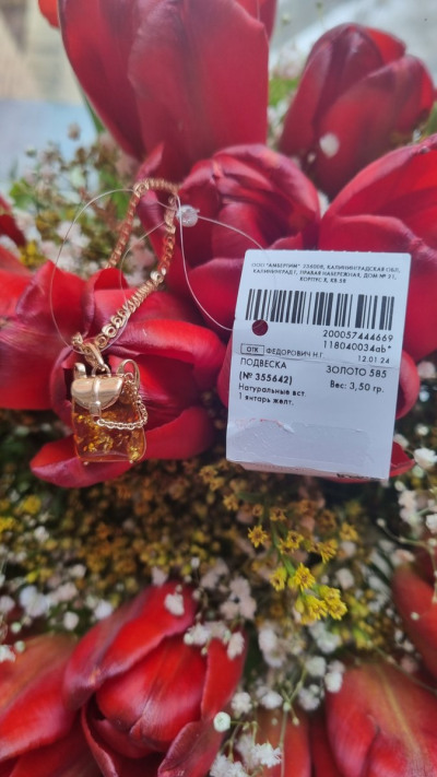 Приобрела в ТЦ Любимово, подвеску с янтарем, очень оригинальная. Отличное обслуживание, спасибо продавцу!