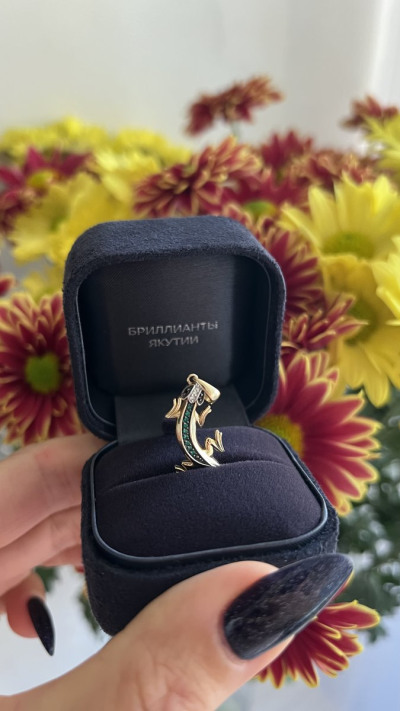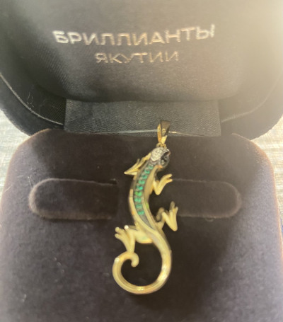 Ящерица с бриллиантами и изумрудами - прекрасный подарок. Купила вместе с кольцом.