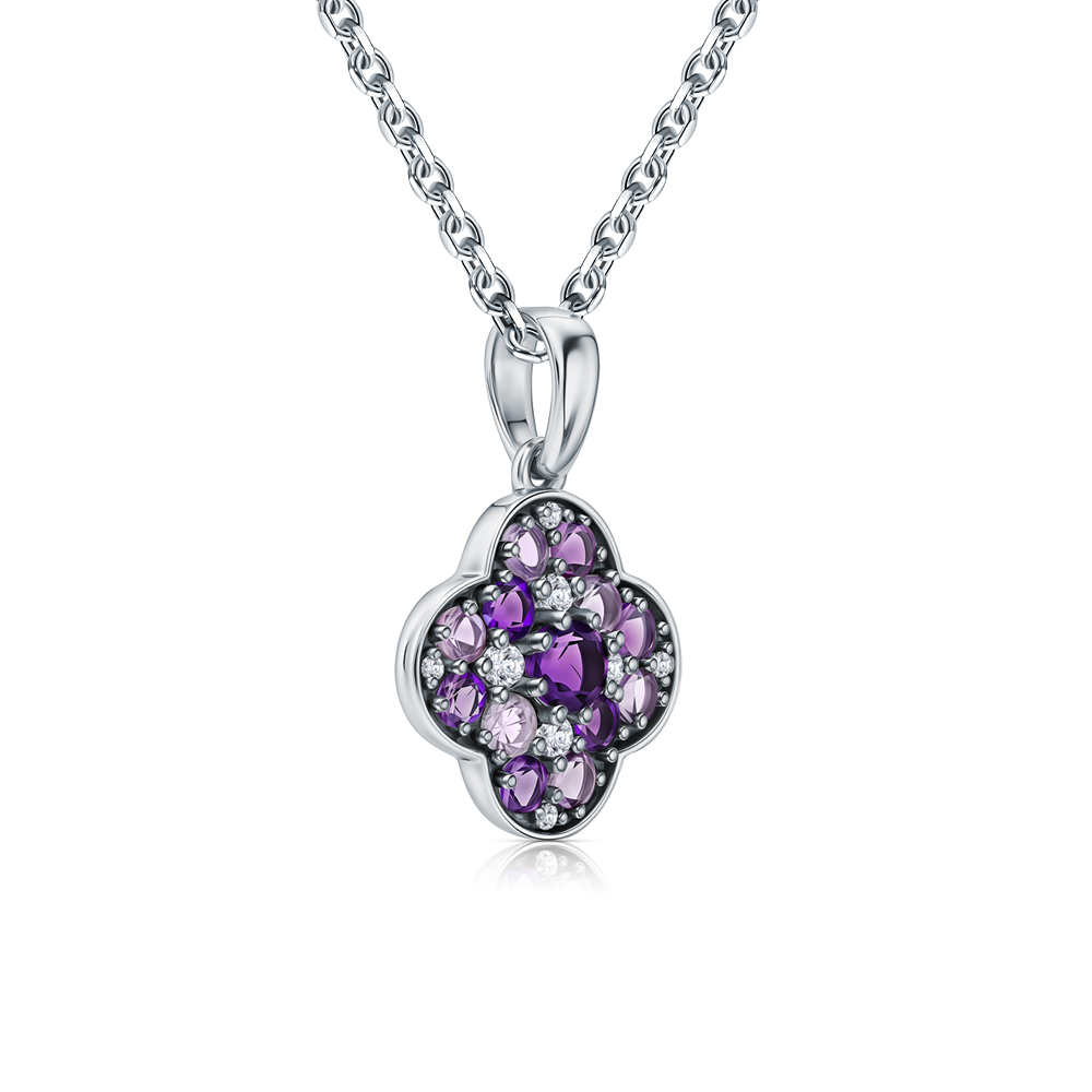 Серебряная подвеска с фианитами и аметистами