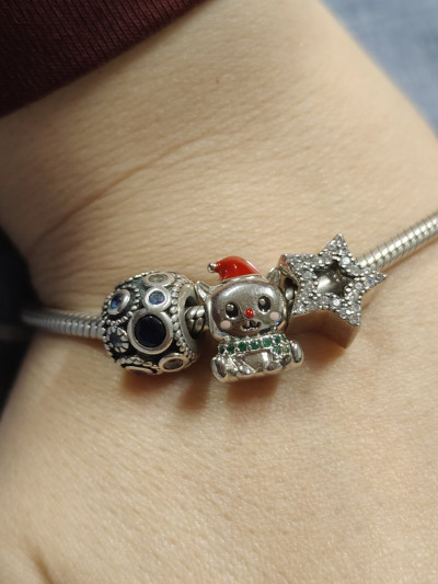 Очень симпатичный шарм среднего размера. Эмаль и фианиты только с одной (внешней) стороны. Отличное дополнение к новогодним шармам!)