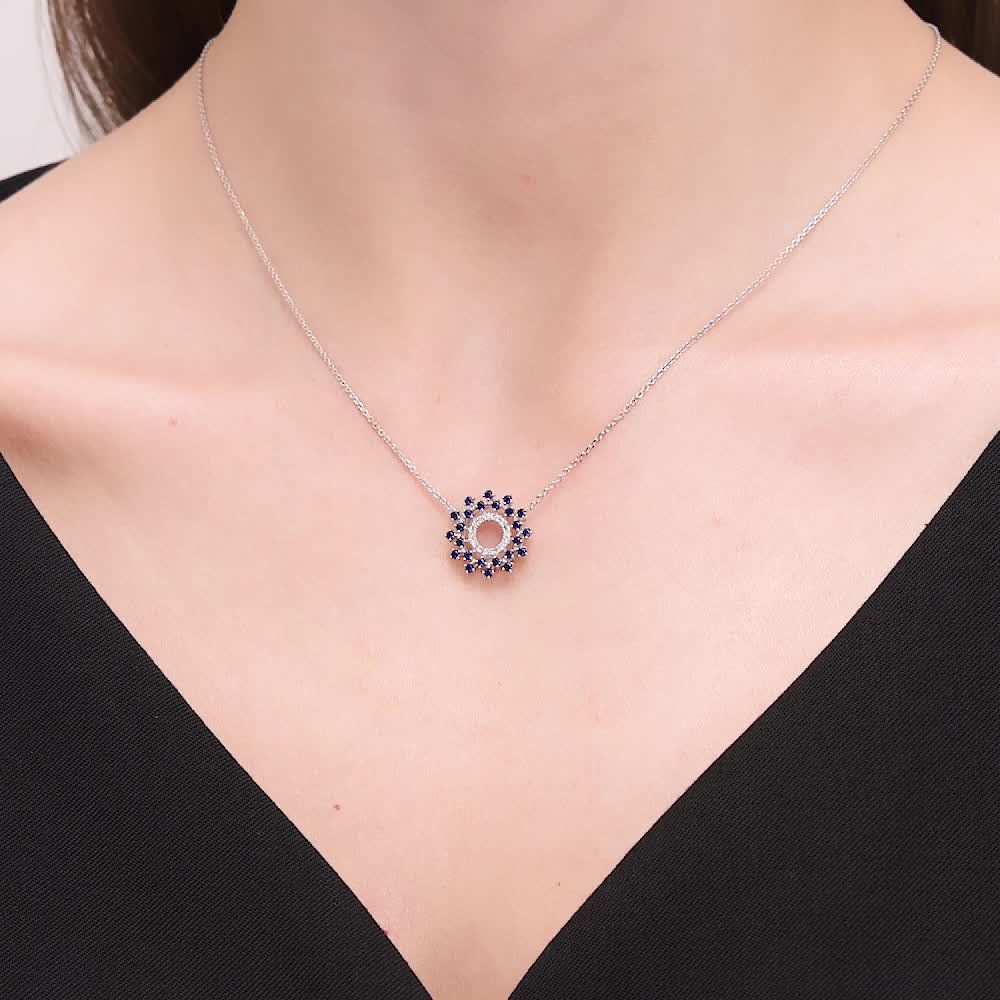Золотое шейное украшение с бриллиантами природными и сапфирами выращенными