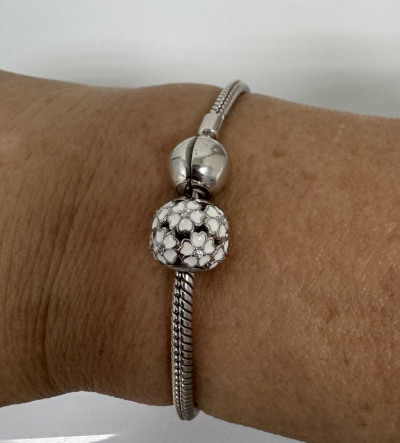 Шарм с белой эмалью и фианитами, очень красивый и переливается!