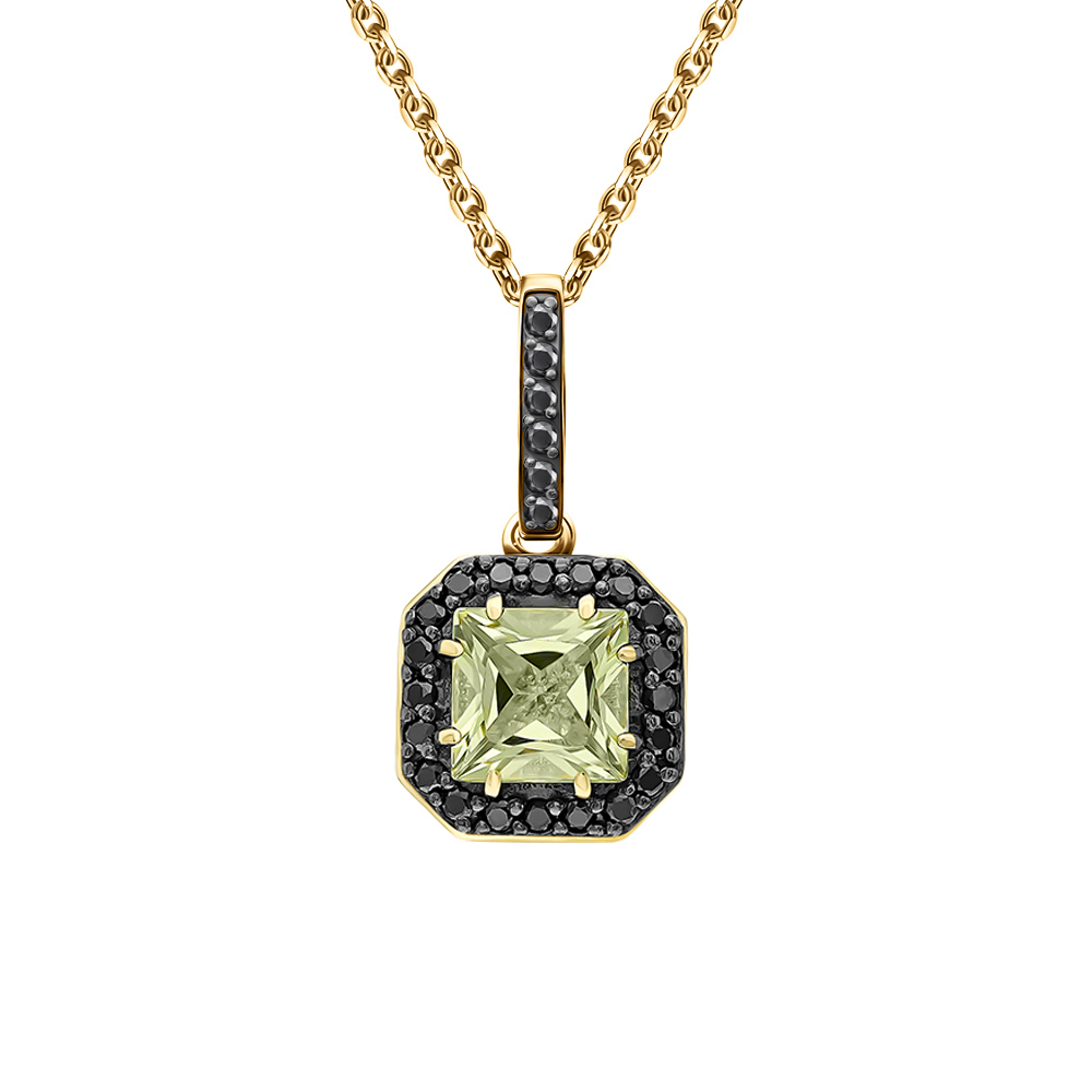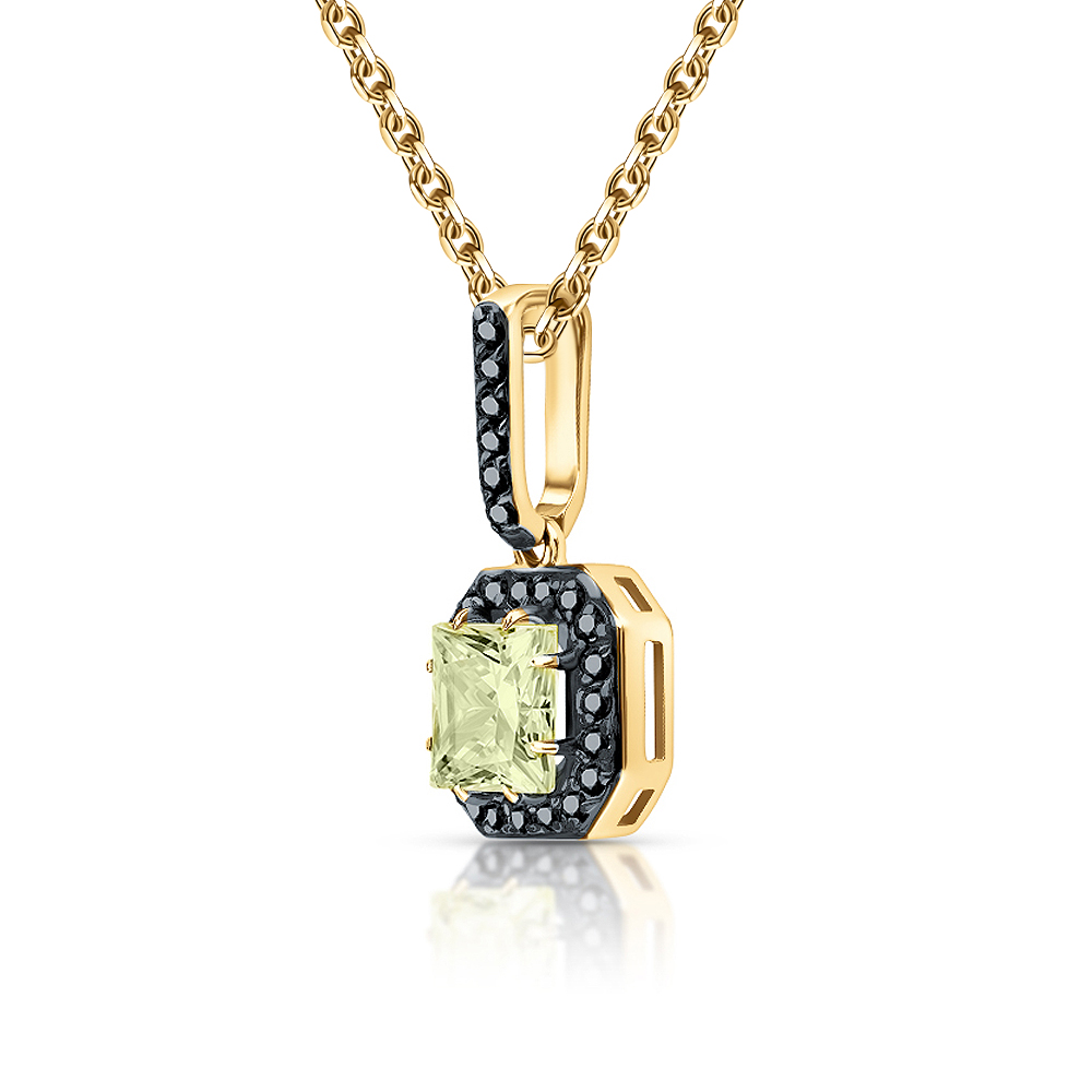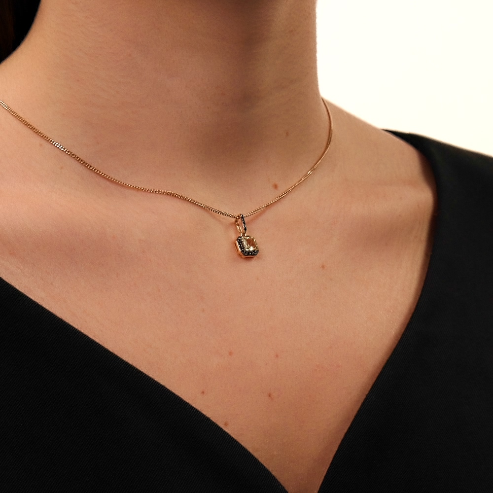 Золотая подвеска с бриллиантами чёрными природными и кварцами природными