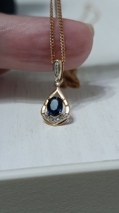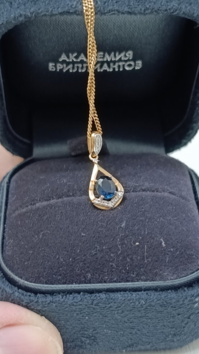 Миленькая аккуратненько подвесочка. Сапфир натуральный чудесно себя чувствует и смотрится в обрамлении бриллиантов. Понравилась. Привлекает внимание, хоть и миниатюрная.