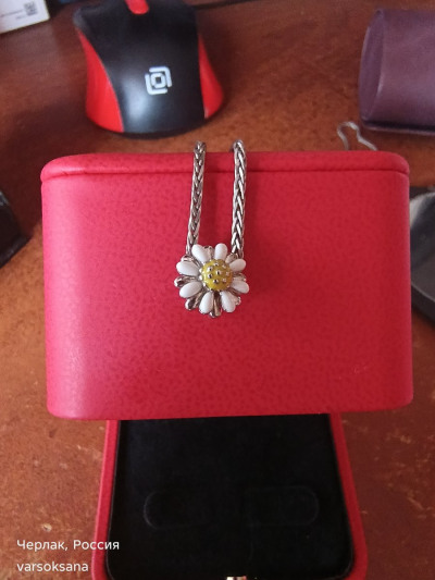 Очень милая ромашка. Только нужна цепочка потолще, иначе она переворачивается.