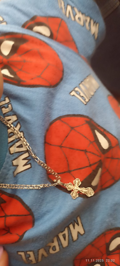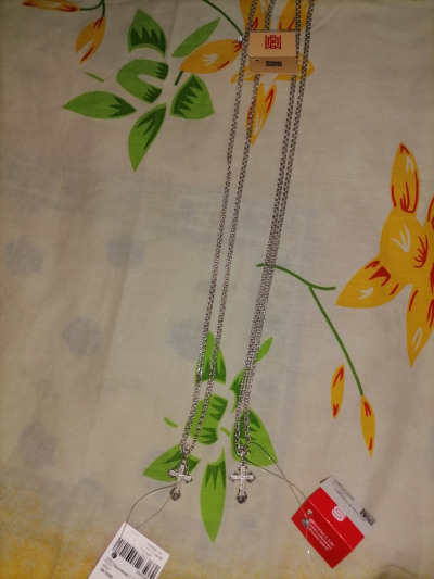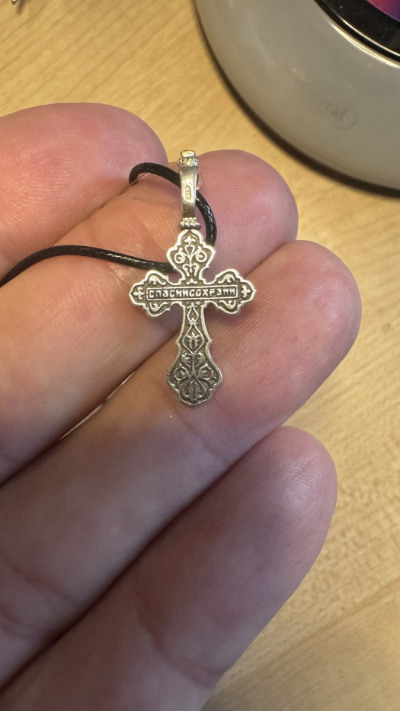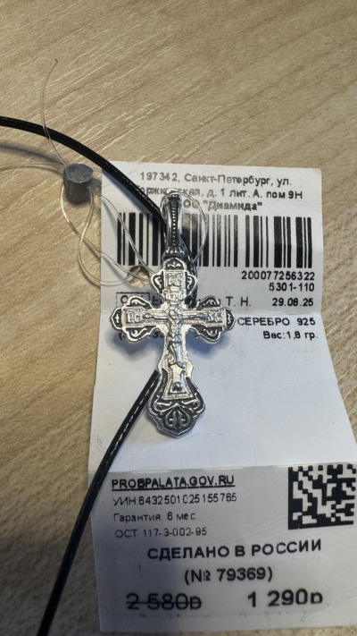 Среднего размера серебренный крестик. Брал в подарок . Очень понравился