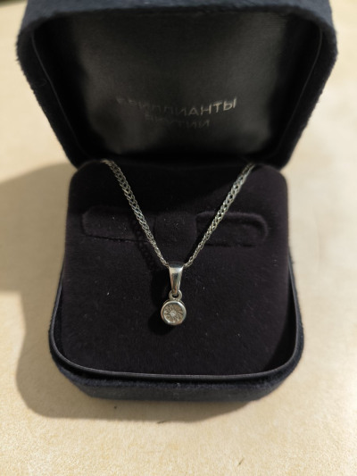 Нежная серебряная подвеска с маленьким бриллиантои, смотрится красиво, покупалась в комплекте с серьгами - гвоздиками