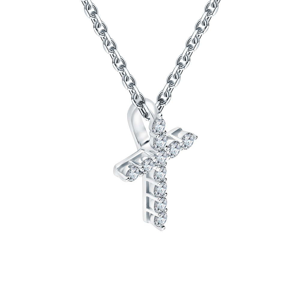 Что сказать… этот миниатюрный крестик попал прямо в сердце. Благородный оттенок платины и совершенный блеск бриллиантов в идеальной огранке. Небольшой, но смотрится гармонично.