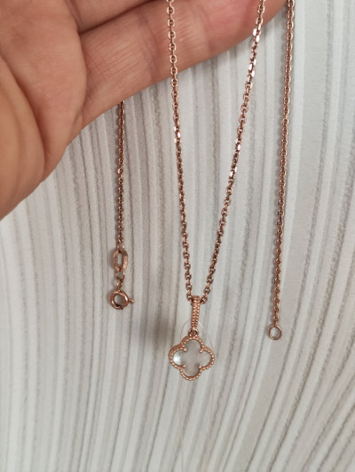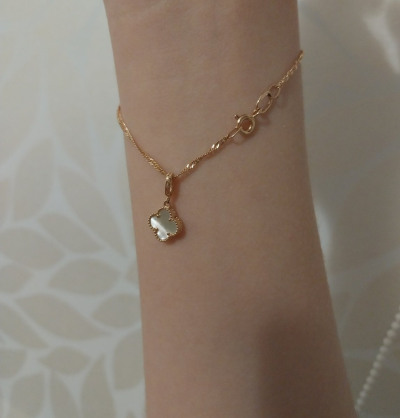 Подвеска с перламутром а-ля Ван Клифф. Симпатичная, блестит, переливается, двусторонняя, причём одна сторона, где кольцо гладкое мне нравится больше, поблескивает, да и на другой стороне мне попался перламутр немного неровный. Поэтому 4*