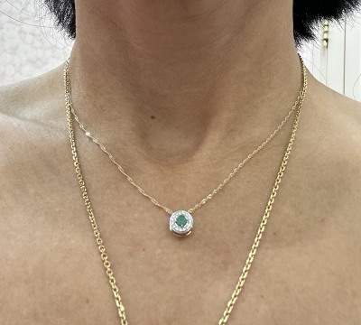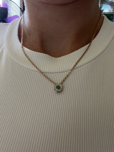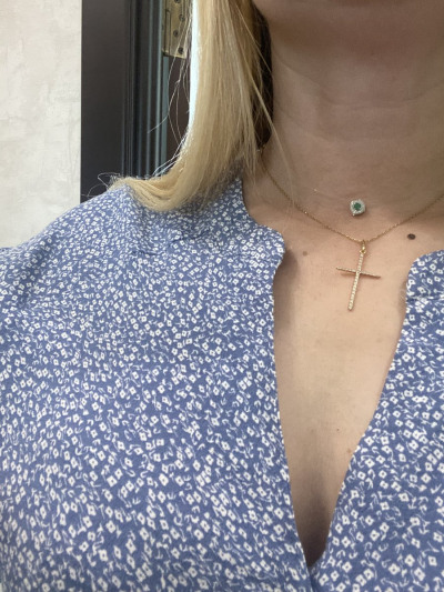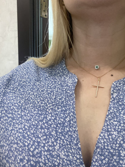 Очень нежная и стильная подвеска. Можно и с платьем и со стилем кэжуал. Решила носить на ювелирной леске, не хотелось снимать крестик))) изумруд ярче, чем на фото и камера не передает блеск бриллиантов