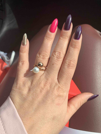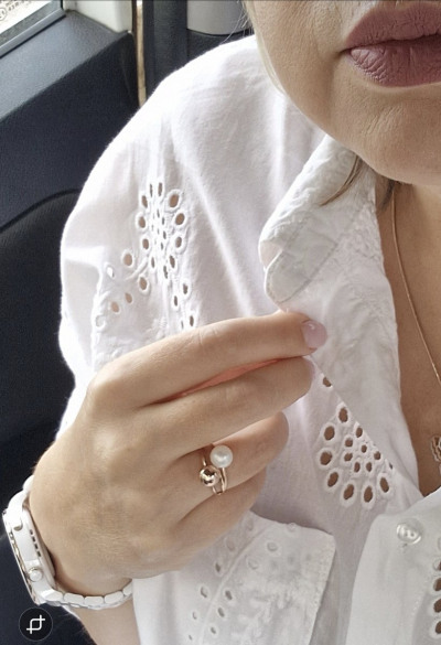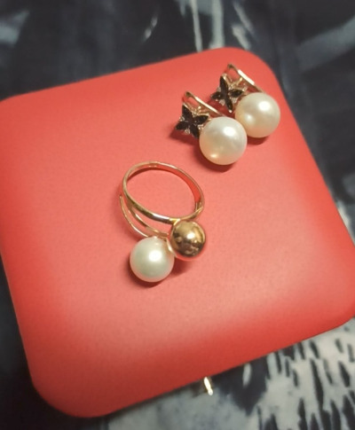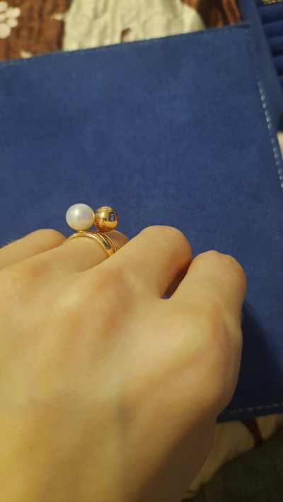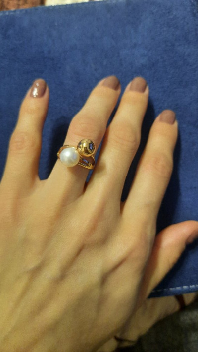 Очень милое колечко. Покупалось в комплект к серёжками с шариками золото плюс жемчужина. Правда ношу только летом, чтобы не сломать одевая перчатки.
