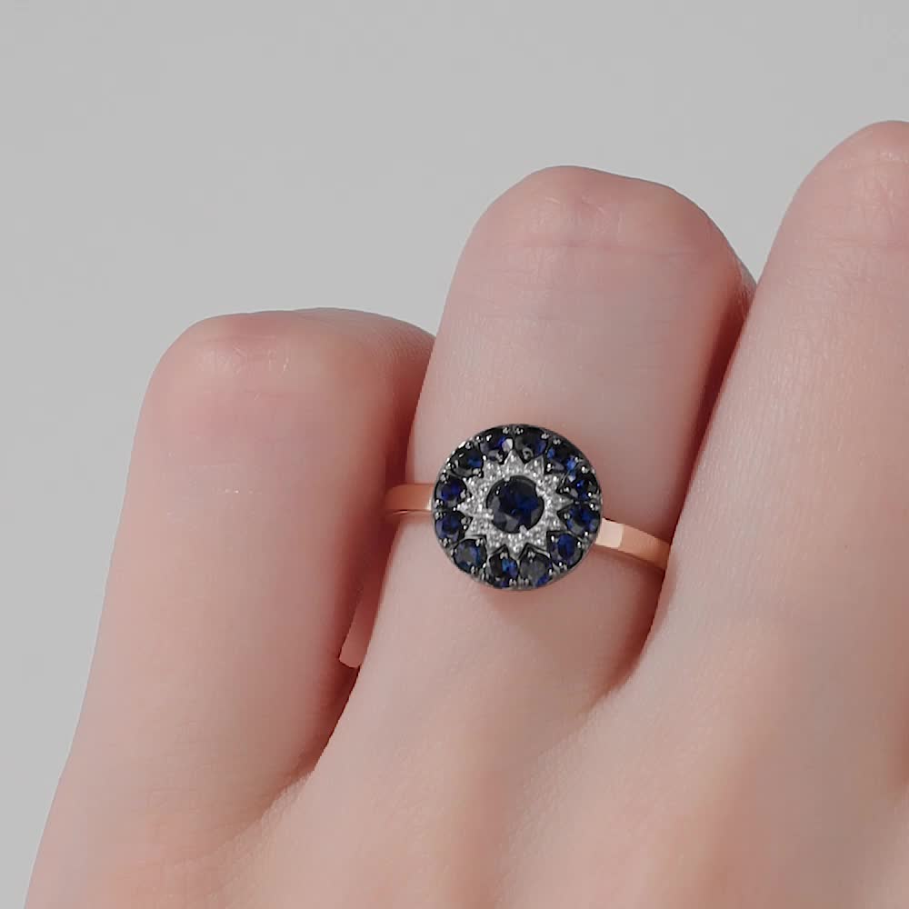 Золотое кольцо с бриллиантами природными и сапфирами природными