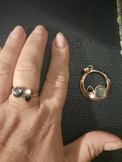 Отличное кольцо с разноцветным перпамутром. Собрала комплект.