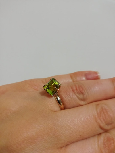 Шикарное, волшебное кольцо с камнем-хамелеон, очень удивительно и эффектно меняет цвет в зависимости от освещения и окружающих предметов, янтарный-желтый-зеленый- бордовый. Султанит большой, с необычной огранкой, привлекает внимание! В магазиннах редко бывают изделия с султанитом. Очень хотела кольцо с большим топазом, но выбрала султанит. Очень довольна! Невероятное кольцо!