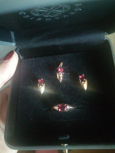 Очаровательное колечко, родолит похож на рубин. Муассониты сверкают не хуже бриллиантов. Приобрела весь комплект. Очень довольна. Спасибо, Санлайт!