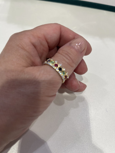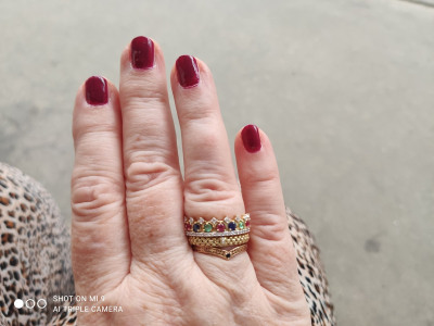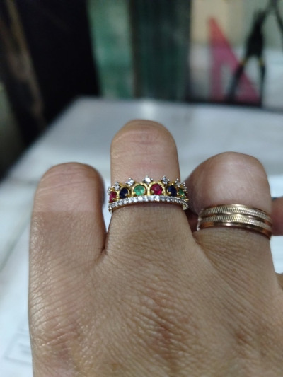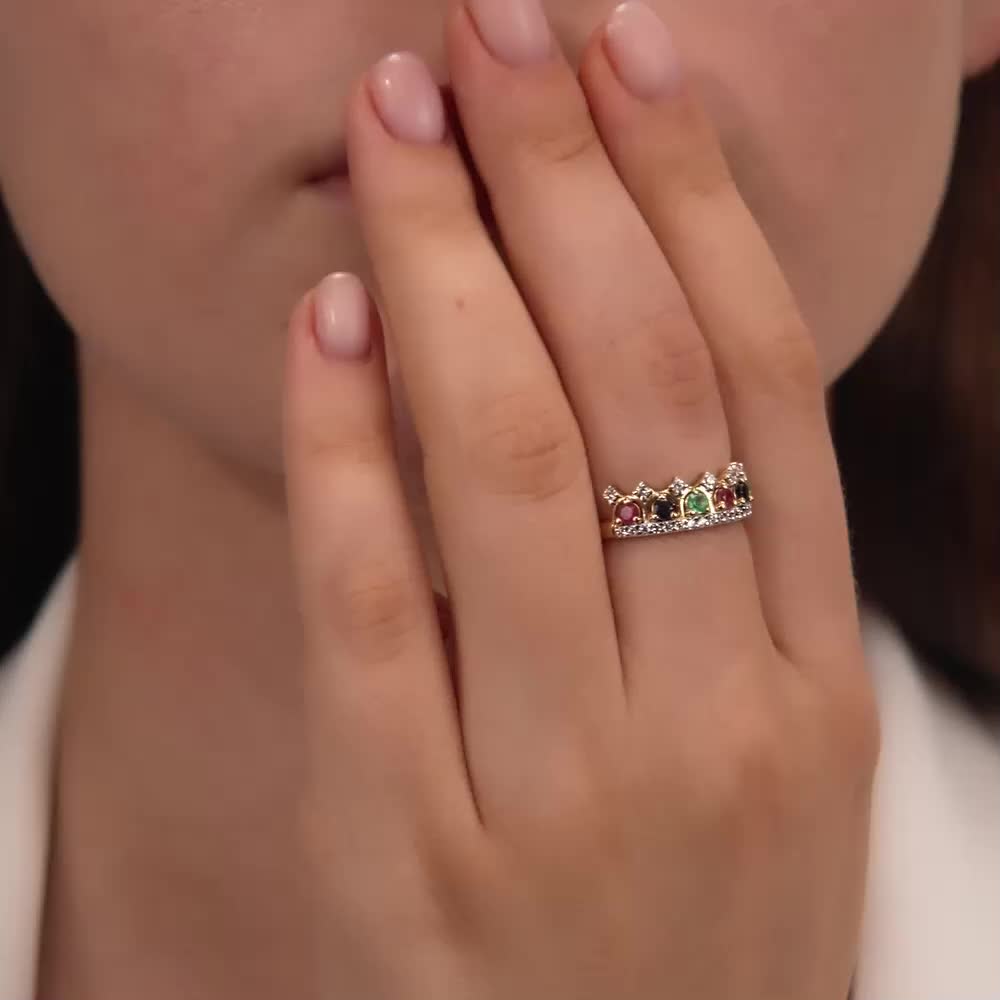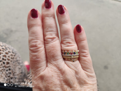 Очень красивое кольцо, драгоценные камни все яркие, великолепный дизайн, корона, цвет лимонной позолоты прекрасно сочетается с рубинами, сапфирами и изумрудами, а фианиты такой чистоты, что сияют ярче бриллиантов