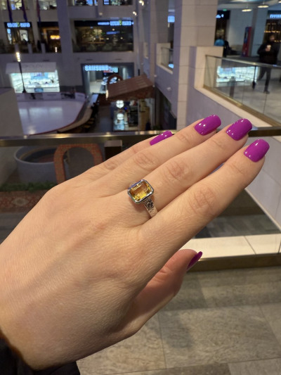 Красивое элегантное колечко. На руке смотрится аккуратно, не громоздко, камень небольшой, в завальцовке «без лапок», не будет цепляться за одежду.